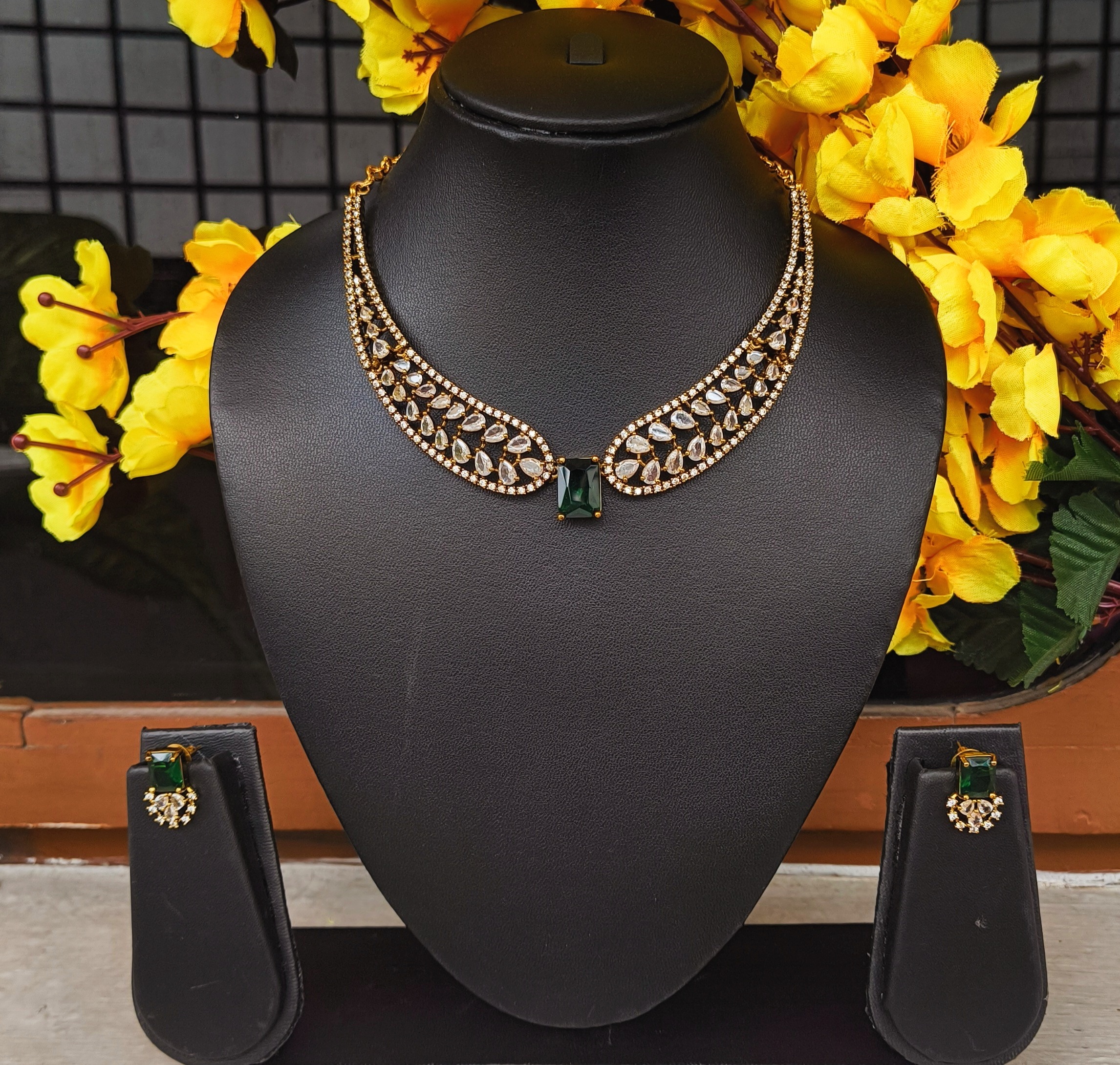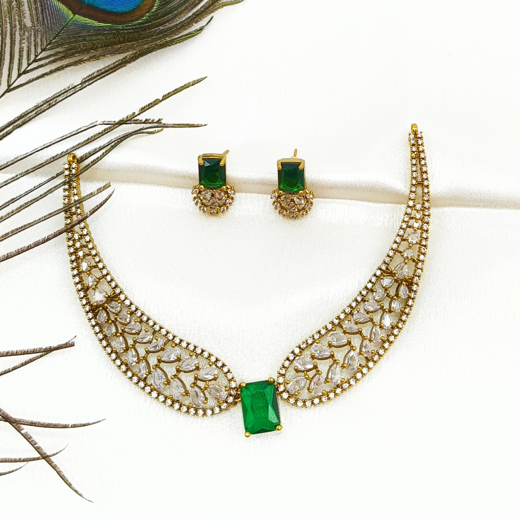 The Green Stone AD Necklace combines shimmering AD stones with bright green stones, creating a contemporary and eye-catching look.