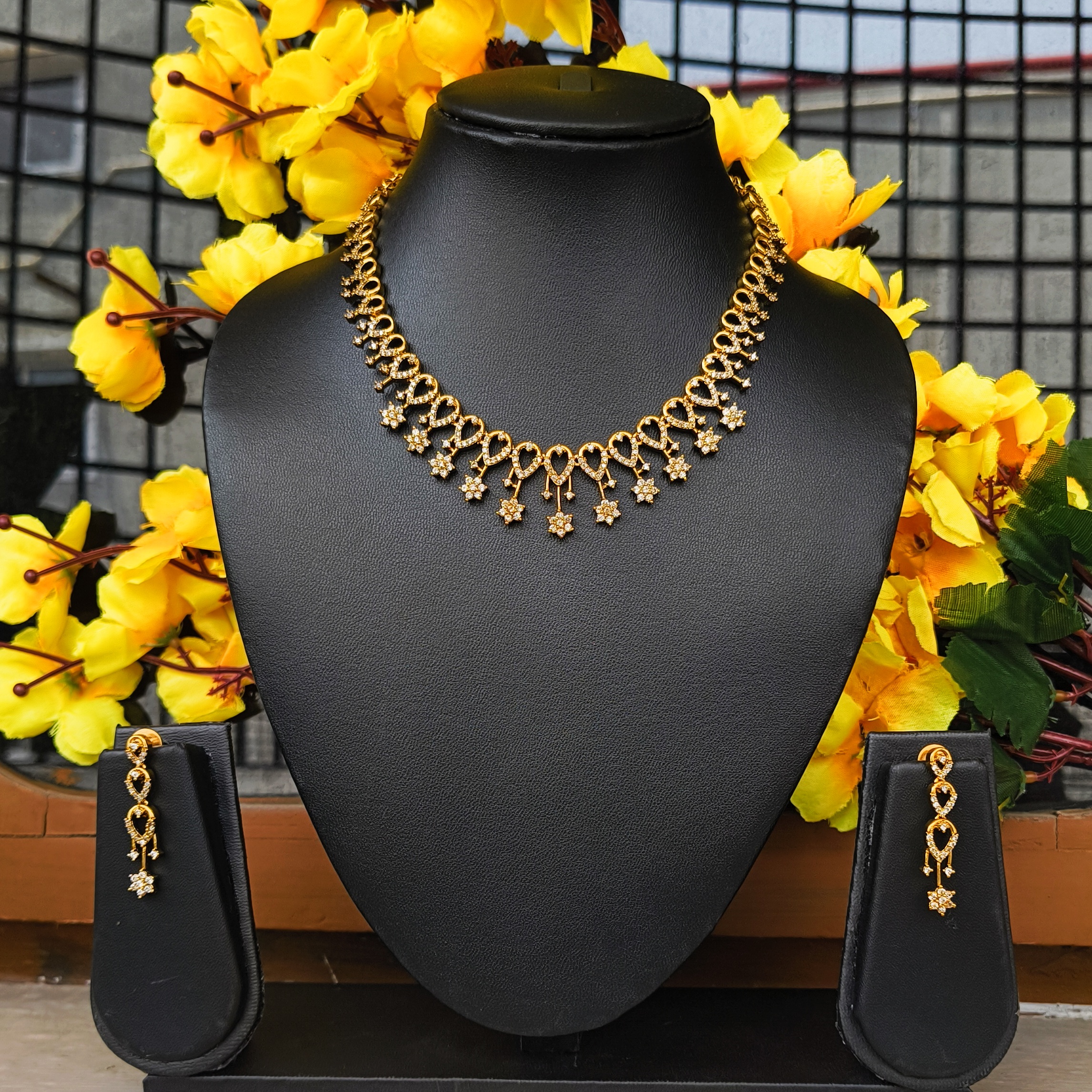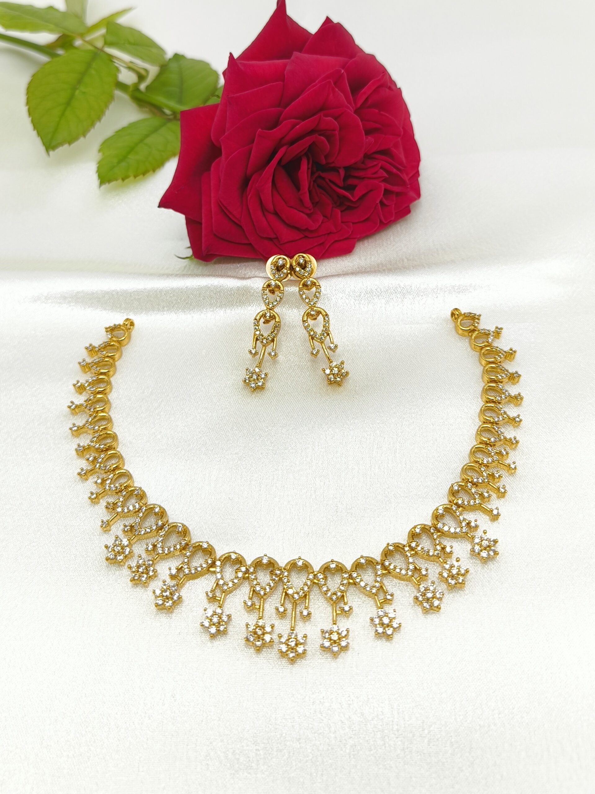 Carefully crafted with a beautiful flower pattern, this necklace set adds a stylish and refined feel to your jewellery collection. It pairs wonderfully with both ethnic and modern outfits, making it a lovely accessory for various occasions.